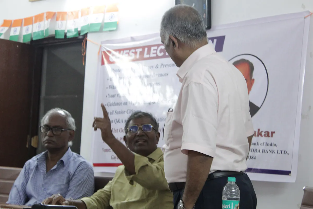 Through real-life examples, we illustrated how digital arrest scams operate, how to recognise debit card risks — both online and at ATMs — and why it is important to respond rather than react to suspicious messages. We encouraged seniors to discuss such messages with family or friends instead of handling them alone — because financial safety grows from awareness that is shared